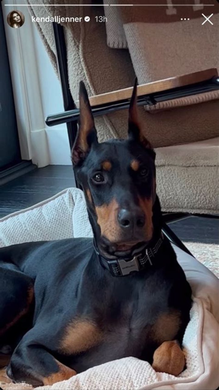 Kendall Jenner's Doberman is a beautiful and well-trained dog. He is a great example of the breed and is a wonderful companion for Kendall.